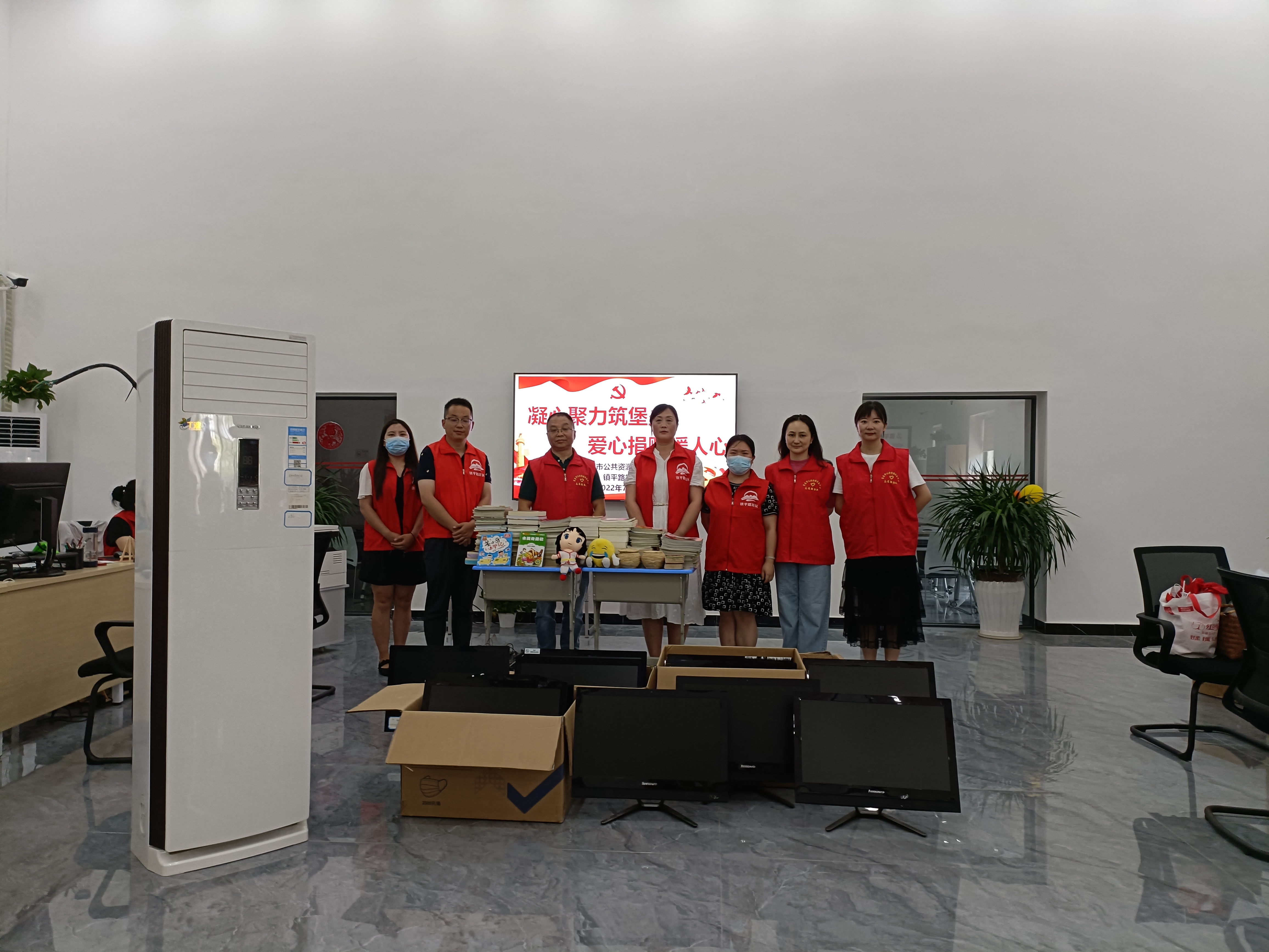 中心为镇平路社区捐赠一批电脑空调和图书