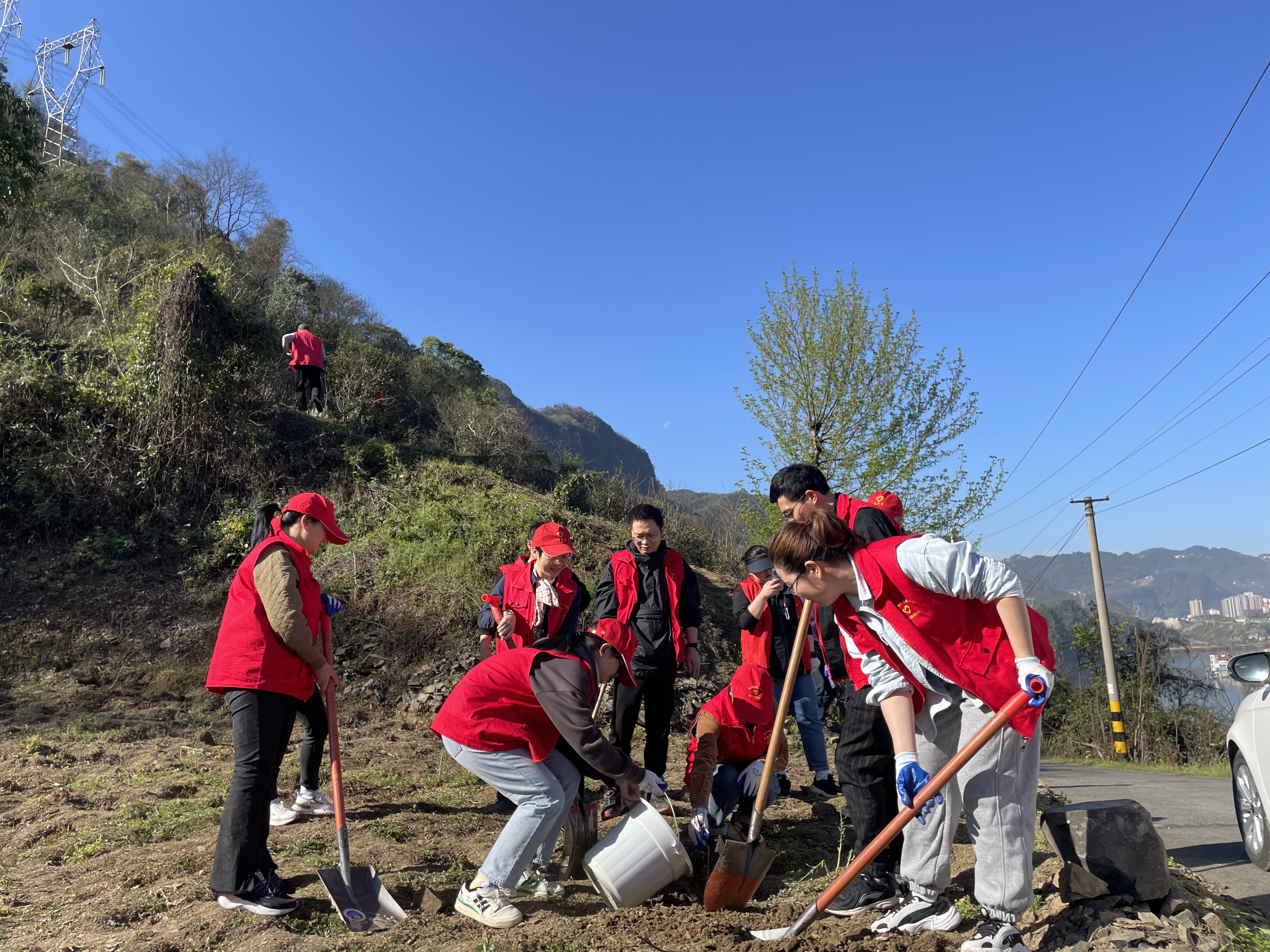 本网讯(通讯员 田靖)3月14日上午,长阳县公共资源交易中心全体干部职工到何家坪一组开展“人勤春早 共植美丽家园”植树活动。
