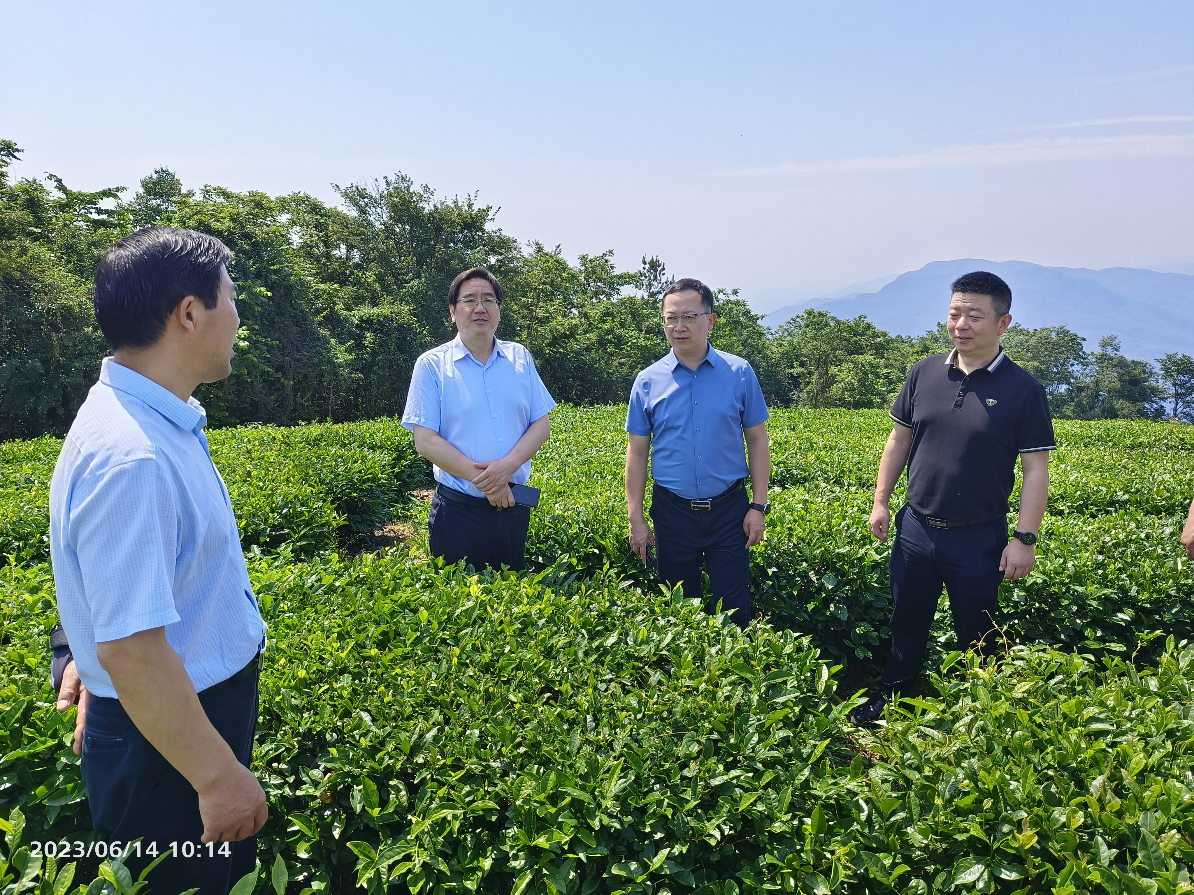 图为调研组了解石桥坪村生态茶园建设情况