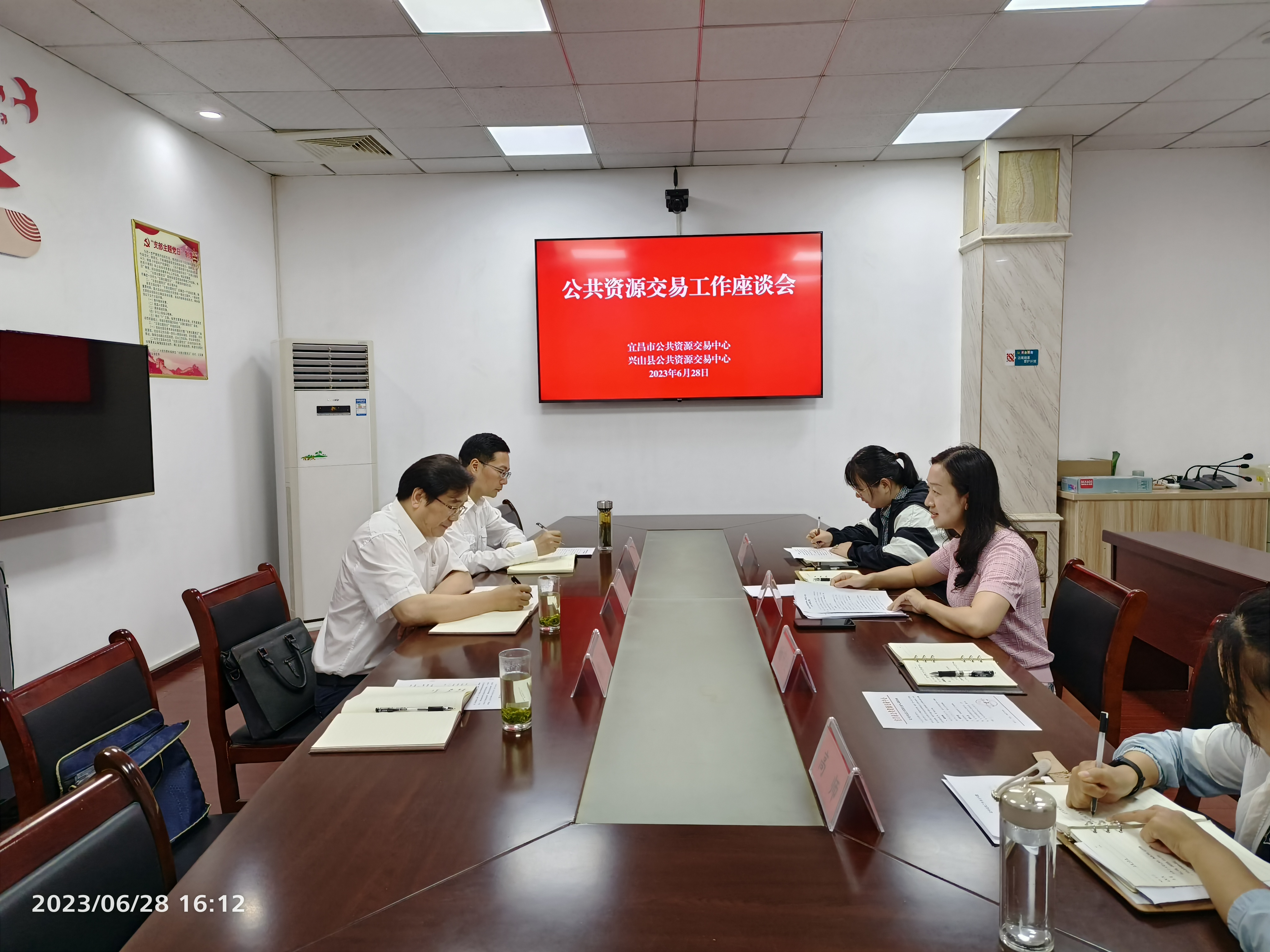 (图为调研组在兴山县公共资源交易中心座谈)