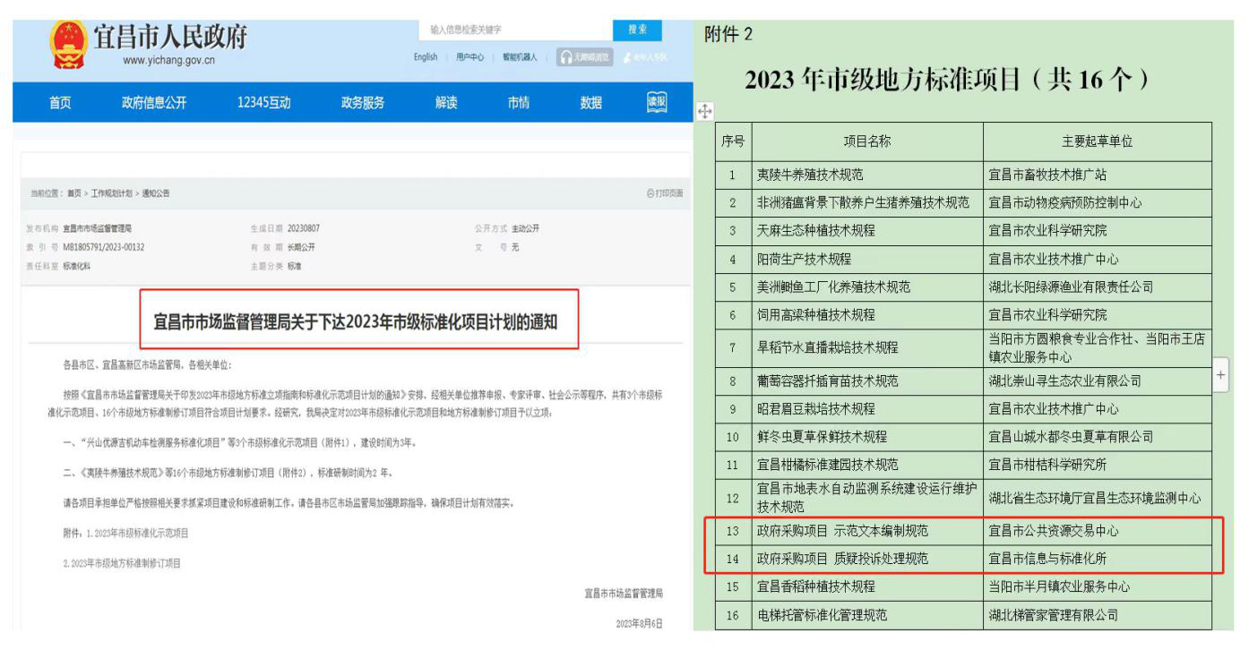 本网讯(通讯员 徐涛)8月7日,市市场监督管理局下达2023年度市级标准化项目计划通知,由我中心报送的《政府采购项目 示范文本编制规范》《政府采购项目 质疑投诉处理规范》等两个项目通过2023年市级地方标准推荐申报、专家评审、社会公示等程序,获批立项。