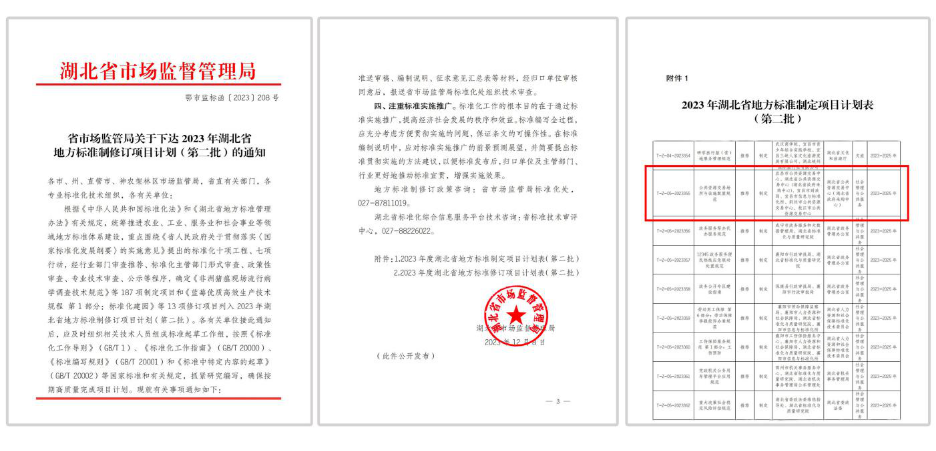 (图为:湖北省市场监督管理局2023年(第二批)省级地方标准立项文件)