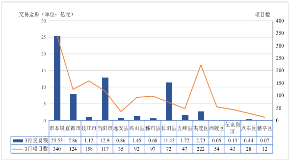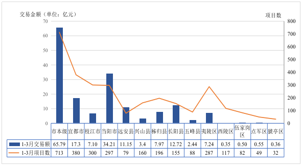 (宜昌市1-3月各县市区公共资源进场交易情况)