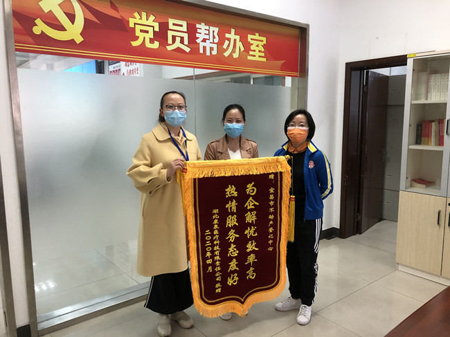 本网讯 (通讯员 杨莹)2020年4月14日上午,中心收到一份特殊礼物—由湖北康泉医疗科技有限责任公司送来的“为企解忧效率高,热情服务态度好”锦旗。“感谢宜昌市公共资源交易 中心 疫情期间 用优质快捷的服务帮助我们复工复产”,该企业负责人感激地说。