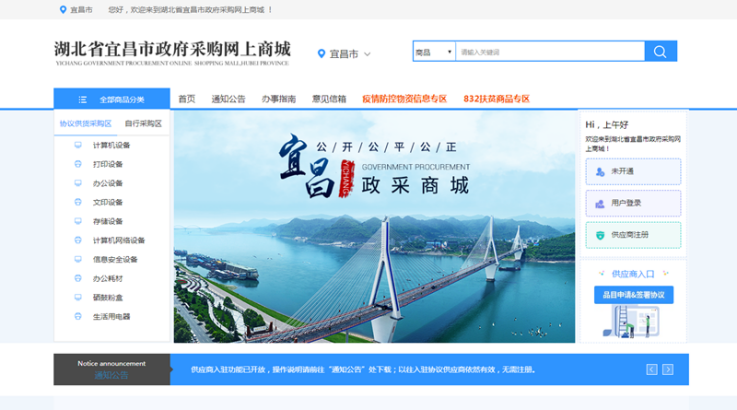 电子商务作为一种新的商业运营模式,目前已成为市场发展的大趋势,网上购物成为时代潮流。宜昌市在《2020年政府工作报告》中将“推进政府采购网上商城建设”作为2020年一项重要任务,并于2019年12月底正式启动宜昌市政府采购网上商城建设。