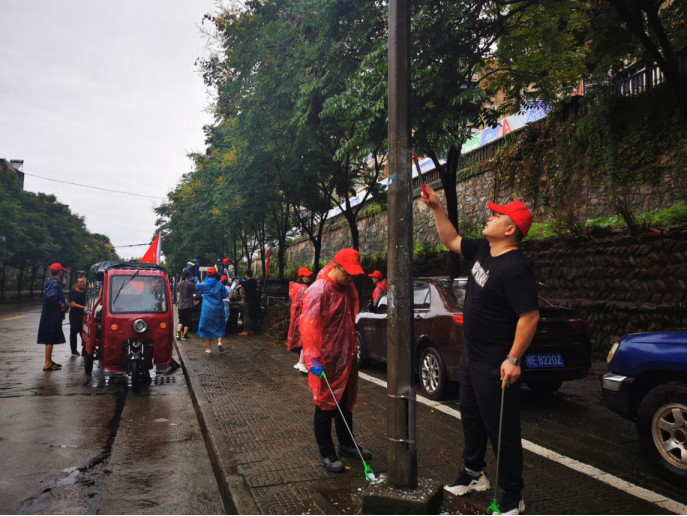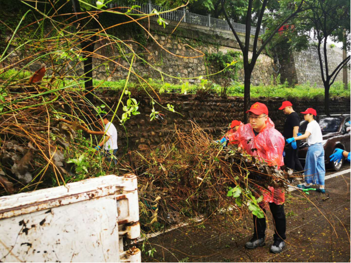 镇平路社区管辖范围内基础设施老化,连日来连续受暴雨影响,对社区居民群众的生产生活造成了一定影响,为响应“双报到”号召,尽可能将暴雨造成的影响和损失减少到最低,中心志愿者们积极参与社区防汛工作。活动当天,他们头戴小红帽,身穿雨衣,在社区主任的带领下,对废弃铁路沿线隐患点进行彻底的清理、整治。活动中,志愿者们发扬不怕脏、不怕累的精神,分工协作、互相配合,拔的拔,铲的铲,捡的捡,抬的抬,尽管下着雨,也没有阻挡大家的热情,不到一个小时,杂物、杂草被清理干净,铁路沿线也焕然一新,有效的排除了安全隐患,给附近的居民营造干净、整洁的生活环境。