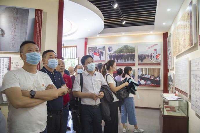 在胡敌烈士纪念馆,党员代表向胡敌烈士铜像敬献花篮,所有同志依次绕胡敌革命烈士铜像一周瞻仰致敬,全体党员在烈士铜像前重温入党誓词,表达对党忠诚、为党尽责的决心。在杨守敬书院,大家认真参观书院讲学区、藏书区,寻找先贤脚步,感受传统文化博大精深的魅力,体会杨守敬国家至上、淡泊名利、务实求真的崇高品格。