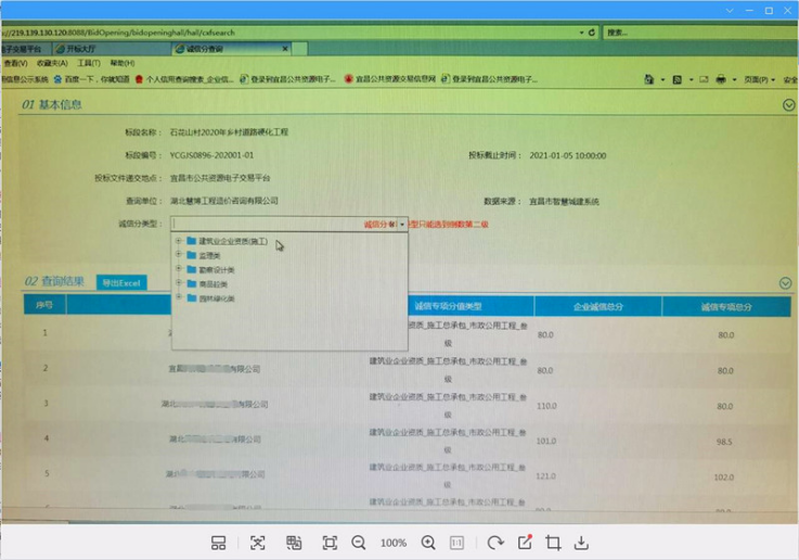 本网讯(通讯员 李朝辉)“以前开标,需要在宜昌市智慧城建系统一个个手工查阅各投标单位诚信分,并且在若干个平台之间来回折腾,要是遇到几十、上百个投标单位还得多花半小时,真是耗时耗力。现在,诚信分查询流程简化后,几分钟就可以同时提取多个投标单位诚信分了!”湖北慧博工程造价咨询有限公司小张在市公共资源交易中心707标室开完标后说。据悉,为了推进我市公共资源交易平台诚信体系建设,简化系统流程,更加直观、快速查询企业诚信分值,我中心于今年1月5日实现了“一键提取”诚信分值的功能,最大限度降低操作难度和缩短开标时间。