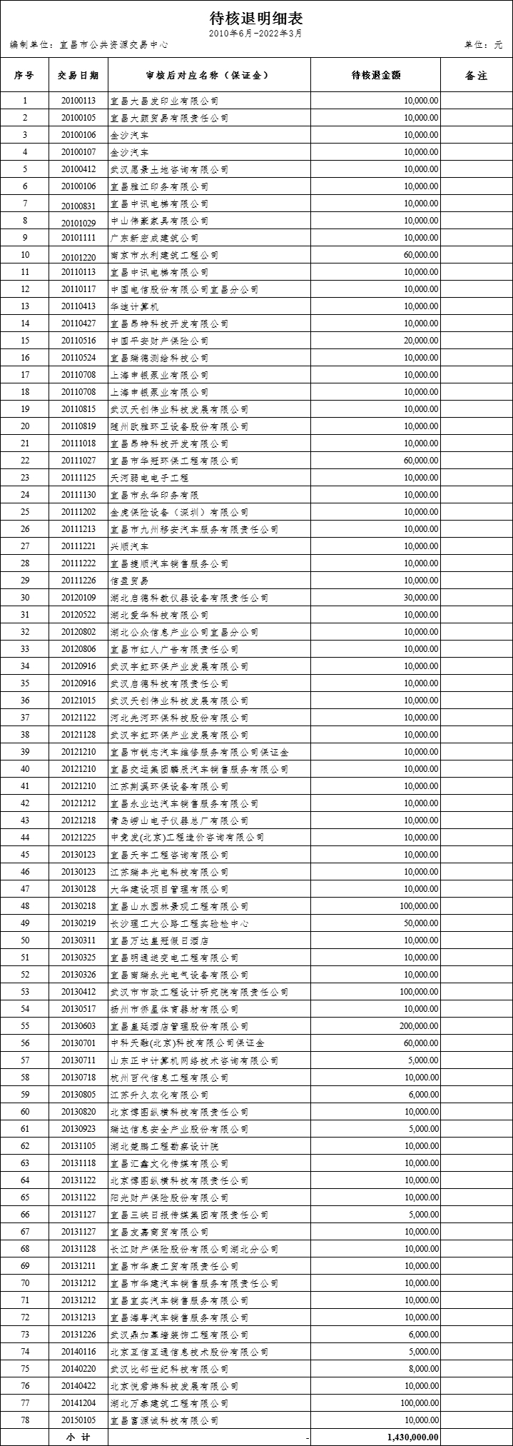 宜昌市公共资源交易中心关于再次清退投标保证金及履约保证金的公告