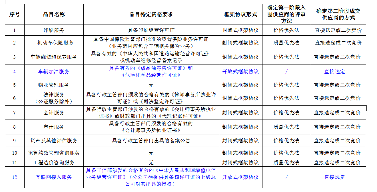 2022年11月下旬起,宜昌市公共资源交易中心陆续开展物业管理服务、车辆维修和保养服务、互联网接入服务、车辆加油服务、法律服务、会计服务、审计服务、资产及其他评估服务、印刷服务、工程造价服务、机动车保险服务、预算绩效咨询评价服务等12个品目的框架协议采购。其中物业管理服务、车辆维修和保养服务、资产及其他评估服务、印刷服务已经发布征集公告,详情请见“宜昌市公共资源电子交易平台”(http://ggzyjy.yichang.gov.cn/TPFront/)。